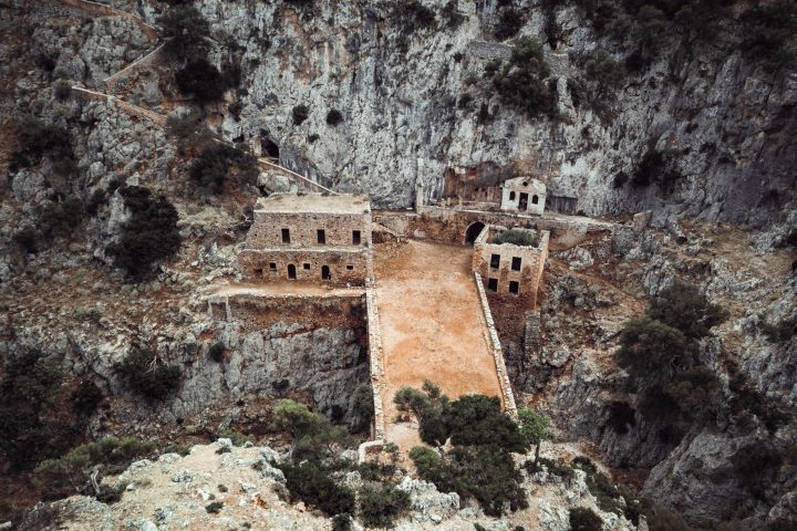 The stunning Moni Gouverneto or Monastery of Gouverneto is one of the oldest monasteries in Crete, sitting high on a clifftop. Built in 1537, the buildings boast a pretty Venetian-style façade and incredible views across the Aegean Sea.